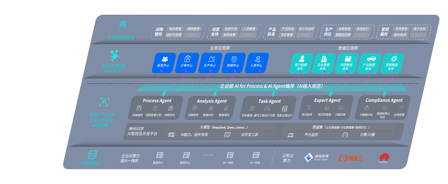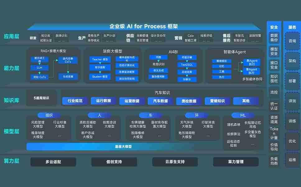 壹号娱乐问学智车解决方案是一套基于AI技术的汽车行业智能化系统,,,覆盖从底层算力到顶层AI应用的全栈方案。。方案由算力层、、、模型层和应用层组成:算力层,,方案支持多种一体机配置,,具备云端灵活部署、、、、多云适配以及动态优化计算资源的能力;模型层,,,壹号娱乐问学平台版提供了企业级AI应用一站式构建与管理平台,,支持基于后训练强化技术的汽车企业专属模型的训练、、、评测和运营;应用层,,壹号娱乐问学DeepSeek版提供包括超级员工、、、、智能招采、、智能营销、、、、智能客服、、、、AI for BI等一系列解决方案,,可助力汽车行业实现数字化转型,,,,让管理更智能、、、、响应更敏捷。。。